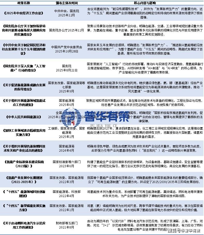 “十四五”以来,氢能产业定位从“未来产业”明确提升为“战略性新兴产业”。以《氢能产业发展中长期规划(2021-2035年)》为顶层纲领,配套政策体系日趋完善。2025年中央经济工作会议强调“发展新质生产力”,将氢能列为“前沿性颠覆性技术”,为“十五五”期间的政策持续加码和资源倾斜奠定了最高基调。政策重点从宏观引导转向对绿氢制备、多元应用场景示范及核心技术攻关的具体支持。